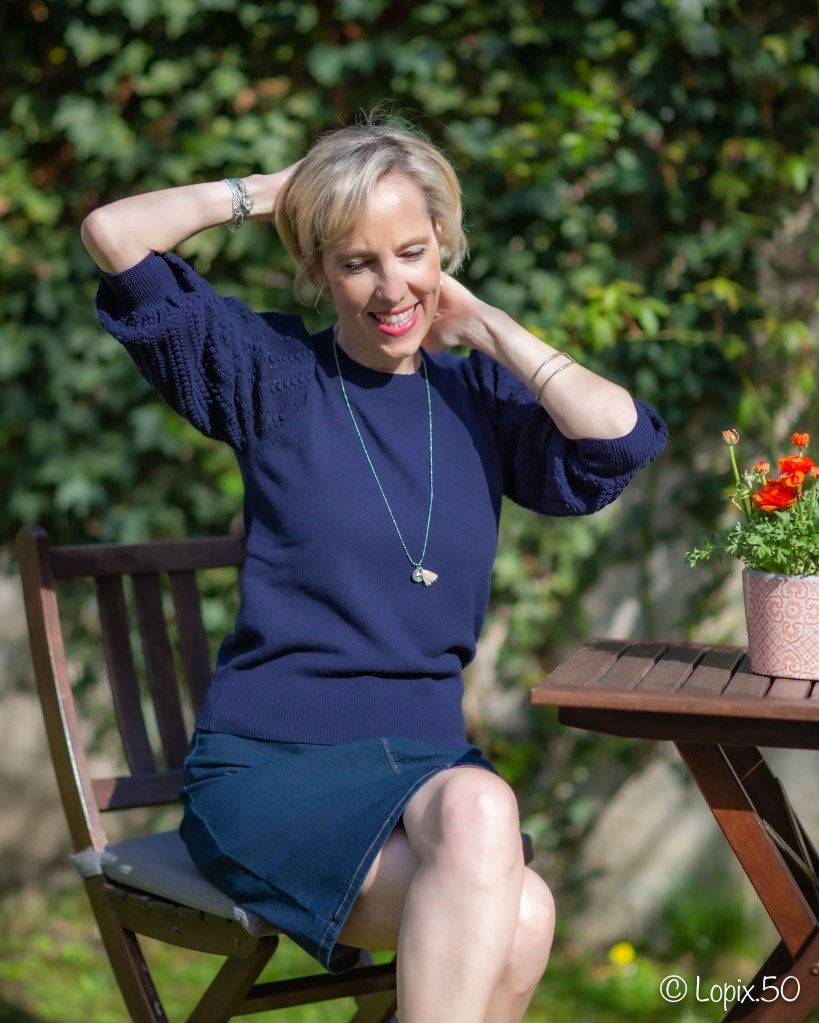 Je vais donc continuer à opter pour les marinières dont je ne me lasse pas, dans n’importe quelle couleur d’ailleurs. Je dois en avoir une quinzaine si ce n’est plus en bleu marine et blanc, rouge et blanc noir et beige, marron et beige, marin et turquoise, turquoise et bleu marine, etc… des hiver et des été. Avec le jean c’est pratique et décontracté et si on y ajoute un blaser ça me va ou une petite veste en jean….