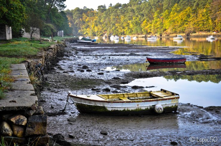 Au bout du sentier côtier, une boucle permet de revenir au village en passant par la forêt. Une charmante promenade et quelque peu atypique, puisque l’on se retrouve au milieu de chênes, de marronniers et de fougères tout en gardant une vue sur la rivière et les bateaux. À la mer ou en forêt l’on ne sait plus très bien, mais l’on éprouve un sentiment de pleine nature, de sérénité, de bonheur tout simplement.