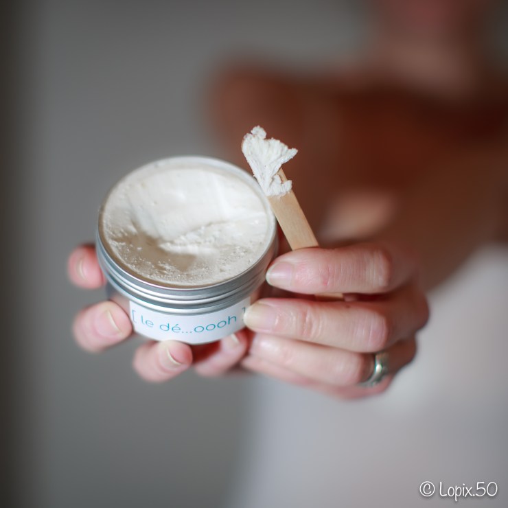 Dubitative à l’idée d’un déodorant solide, force est de constater qu’il s’étale très facilement à l’aide d’une spatule, comme un beurre fouetté, et de fait est très agréable à utiliser. Il ne colle pas, ne laisse aucune trace sur les vêtements, mes aisselles sont nourries et hydratées toute la journée.