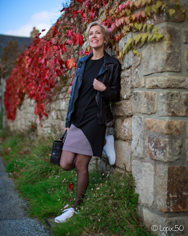 Un chouette article bien illustré, et avec de belles photos : j’adore le spot que tu as choisi pour ce shooting ! Je suis une fan du pied-de-poule et du pied-de-coq. 🖤🤍 J’en possède d’ailleurs plusieurs pièces : veste, jupe, robe (une vintage achetée à Tokyo), etc… Un motif intemporel que cette petite robe noire revisite de façon originale et actuelle. 👌 J’aime aussi beaucoup les baskets blanches qui donnent une côté moderne et urbain à l’ensemble.