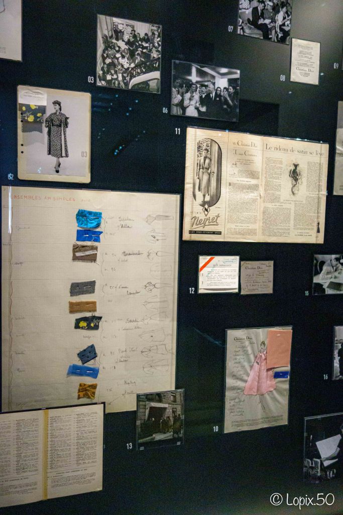 Une épopée qui revit sous nos yeux au travers d’archives, tirages argentiques, revues de presse, objets, créations iconiques, reconstitution saisissante du bureau de Monsieur Dior et de la fameuse Cabine.