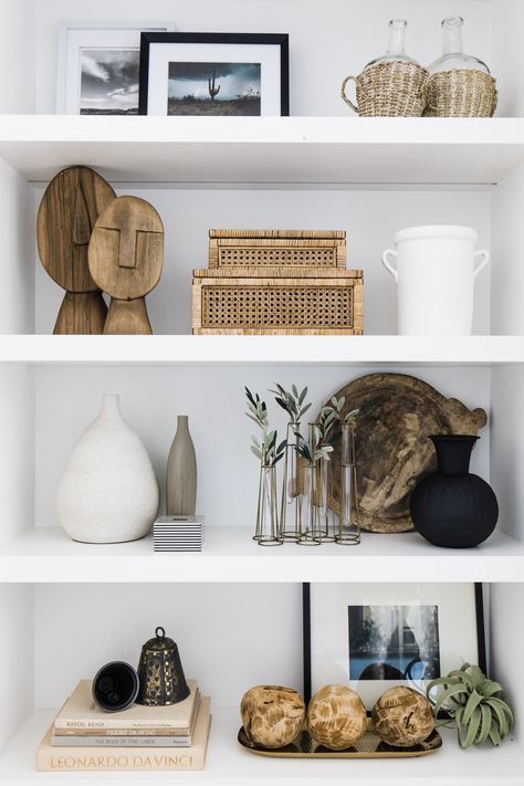 Étant moi-même férue de déco, je vous propose ci-dessous quelques conseils et astuces, ainsi que mes inspirations, pour des étagères joliment décorées et un intérieur harmonieux…