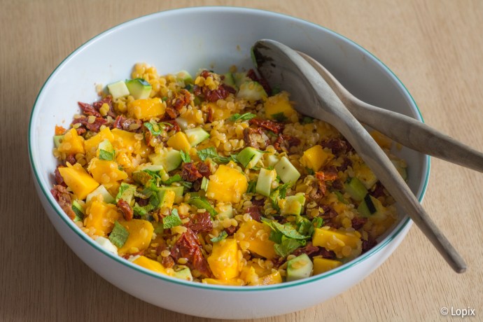 Venez déguster ma recette coup de cœur : une salade de lentilles corail – mangue.
