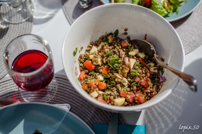 Prolongeons l’été avec cette salade de lentilles vertes-tomates-pommes… Un régal !