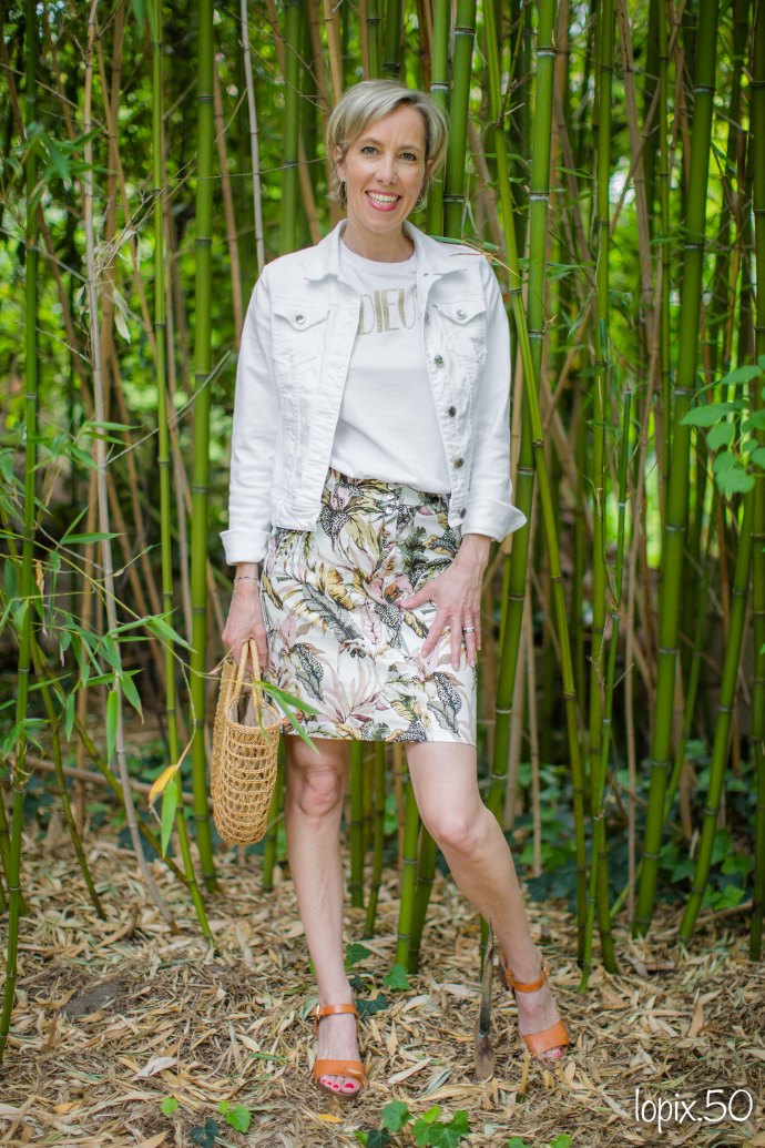 Aujourd’hui nous allons parler imprimé tropical dans notre garde-robe… L’occasion pour moi de vous présenter ma jupe BLEU D’AZUR…